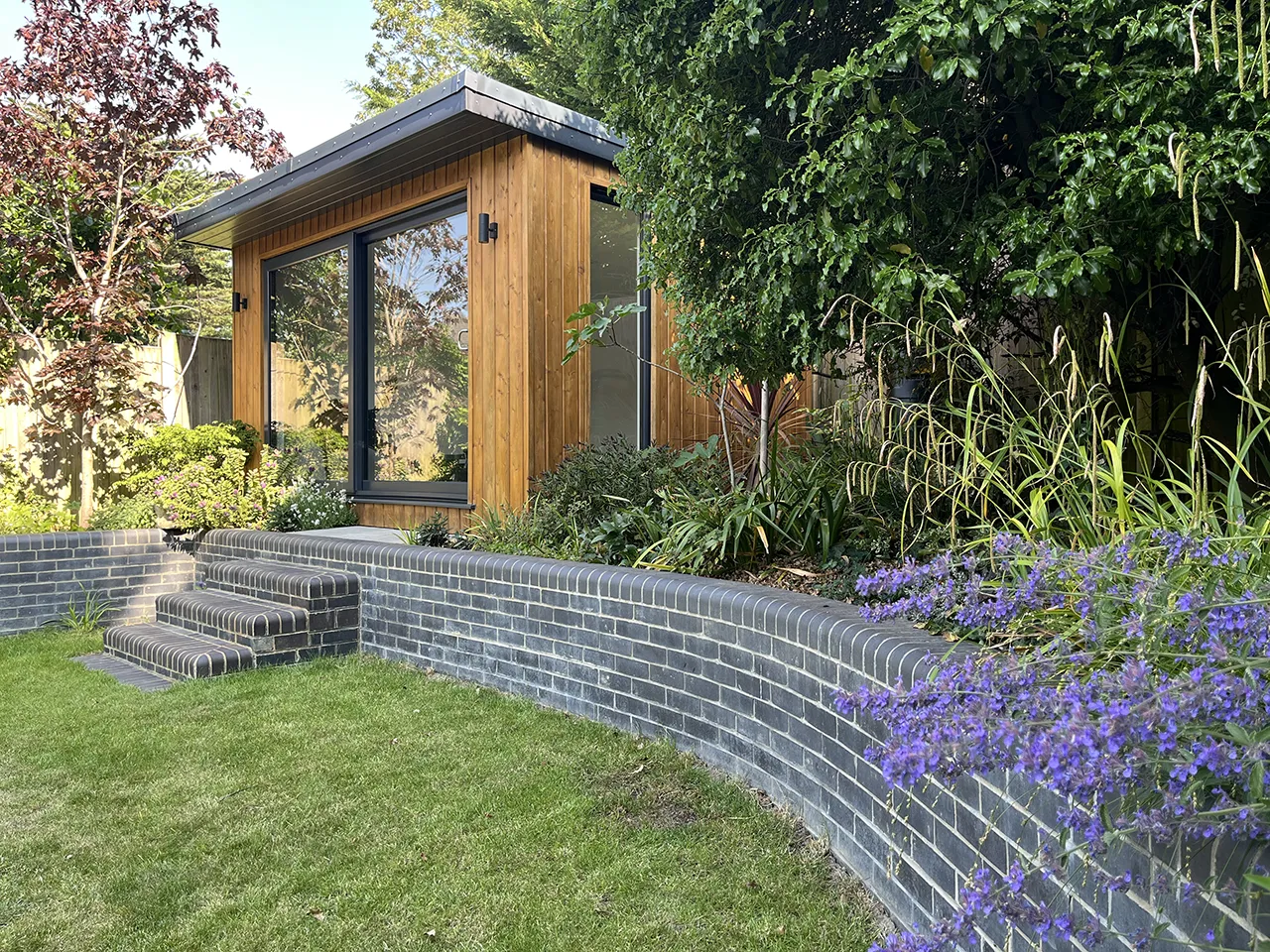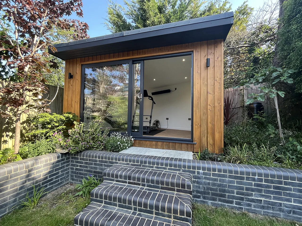 This lovely, fully insulated build is discreetly nestled in an odd corner meaning that this is not a regular garden room. However, the bespoke size and large step up to the area did not deter our team who built an eye-catching room, perfect for a good work-out or space for some family time.